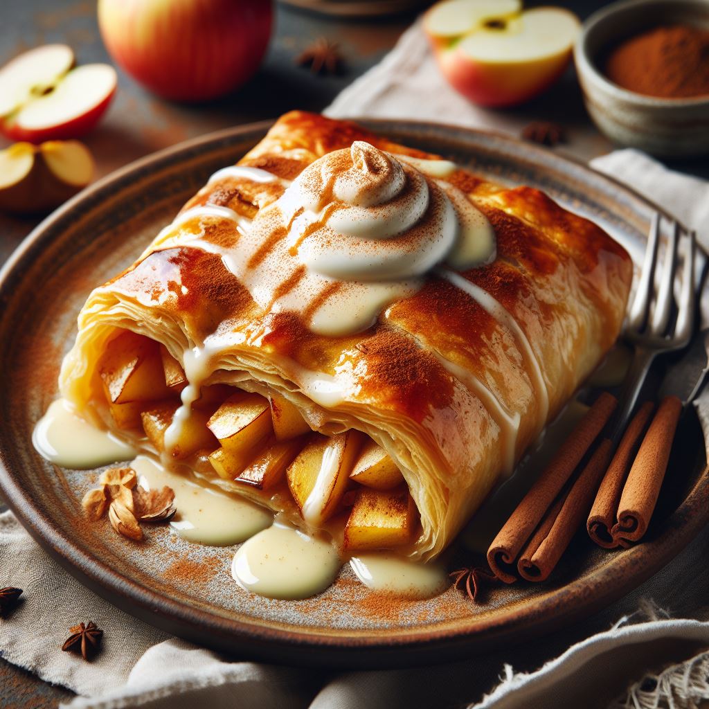 Dieser Apfelstrudel ist ein einfaches und leckeres Dessert, das du mit wenigen Zutaten zubereiten kannst. Der Teig ist dünn und knusprig, die Füllung ist saftig und aromatisch. Die Vanillesoße ist cremig und süß und passt perfekt zum Strudel. Dieses Rezept ist ideal für einen gemütlichen Nachmittag oder einen besonderen Anlass.